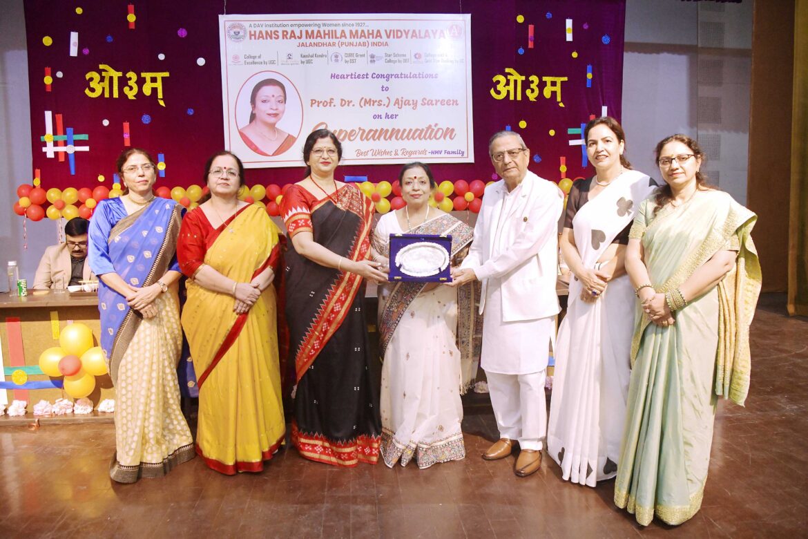 जालंधर: शहर के हंसराज महिला महाविद्यालय परिवार की ओर से प्राचार्या प्रो. डॉ. (श्रीमती) अजय सरीन की सेवानिवृत्ति के अवसर पर भव्य विदायगी समारोह का आयोजन किया गया। यह समारोह उनके समर्पण, नेतृत्व और संस्थान में उनके योगदान का प्रतीक था। डॉ. सरीन 36 वर्षों के टीचिंग करियर और 9 वर्ष के बतौर प्राचार्या के कार्यकाल के बाद सेवानिवृत्त हुए। डॉ. एकता खोसला ने एचएमवी की नई प्रिंसिपल के तौर पर पदभार ग्रहण किया।