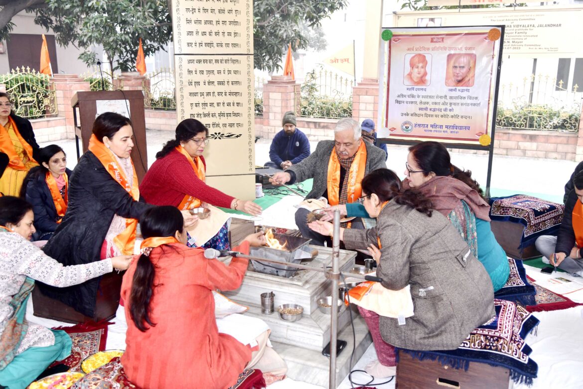 जालंधर: शहर के हंस राज महिला महाविद्यालय में प्राचार्या प्रो. डॉ. (श्रीमती) एकता खोसला के दिशानिर्देशन में आर्य प्रादेशिक प्रतिनिधि उपसभा, पंजाब अधीन संस्थान की आर्य युवति सभा द्वारा महान स्वतन्त्रता सेनानी, समाज सुधारक, निर्भीक पत्रकार, लेखक एवं प्रभावशाली वक्ता एवं कुशल संगठनकर्त्ता स्वामी श्रद्धानंद जी के बलिदान दिवस पर उन्हें श्रद्धांजलि अर्पित करने हेतु हवन यज्ञ का आयोजन किया गया। इस अवसर पर मुख्यातिथि के रूप में वाई. के. सूद (सदस्य, आई. क्यू.ए.सी.) उपस्थित रहे। हवन यज्ञ के माध्यम से सर्वमंगल की कामना की गई एवं स्वामी श्रद्धानंद जी को श्रद्धांजलि देते हुए उनके राष्ट्र और समाज के प्रति योगदान को नमन किया गया।
