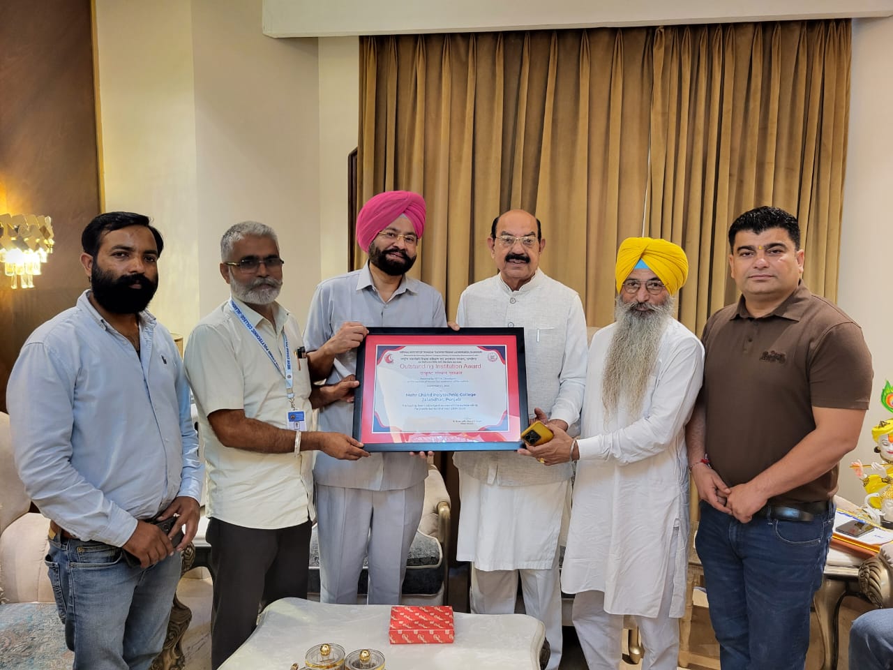 जालंधर: शहर के मेहरचंद पॉलिटेक्निक कॉलेज को पूरे भारत में सर्वश्रेष्ठ पॉलिटेक्निक का पुरस्कार मिलने पर कैबिनेट मंत्री मोहिंदर भगत ने प्रिंसिपल डॉ. जगरूप सिंह को बधाई दी। इस अवसर पर उन्होंने कहा कि यह दोआबा और जालंधर शहर के लिए गर्व की बात है कि यहां के पॉलिटेक्निक कॉलेज को राष्ट्रीय स्तर पर यह सम्मान मिला है। प्रिंसिपल डॉ. जगरूप सिंह ने इस अवसर पर मंत्री जी का मुंह मीठा करवाया और बताया कि मेहरचंद पॉलिटेक्निक कॉलेज के अलावा केवल नचिमुथु पॉलिटेक्निक कॉलेज, पोलाची (तमिलनाडु) और जे.एस.एस. पॉलिटेक्निक कॉलेज, मैसूर (कर्नाटक) को ही यह पुरस्कार मिला है।