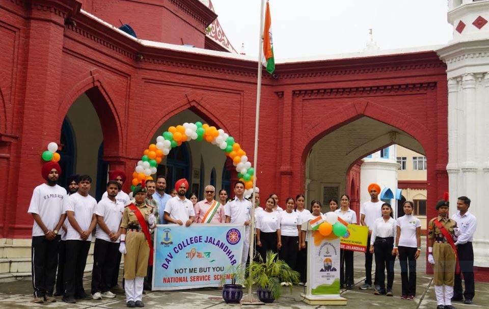 जालंधर: शहर के डी.ए.वी. कॉलेज का परिसर 15 अगस्त को देशभक्ति के रंगों से सराबोर हो उठा जब संस्थान ने भारत के 79वें स्वतंत्रता दिवस को बड़े उत्साह और राष्ट्रीय गौरव की भावना के साथ मनाया। संकाय, छात्र, पूर्व छात्र और अतिथि बड़ी संख्या में देश के स्वतंत्रता सेनानियों को श्रद्धांजलि देने और भारत की प्रगति के प्रति अपनी प्रतिबद्धता की पुष्टि करने के लिए एकत्रित हुए। कार्यक्रम सुबह ठीक 9 बजे शुरू हुआ। समारोह के मुख्य अतिथि प्राचार्य डॉ. राजेश कुमार ने एनसीसी और एनएसएस प्लाटून का निरीक्षण किया। सबलेफ्टिनेंट प्रो. मनोज कुमार मुख्य अतिथि के साथ थे। एनसीसी थल, वायु, जल और एनएसएस प्लाटून का नेतृत्व क्रमशः वंश शर्मा, विवेक गिरी, प्रीति और भवनीत ने किया।