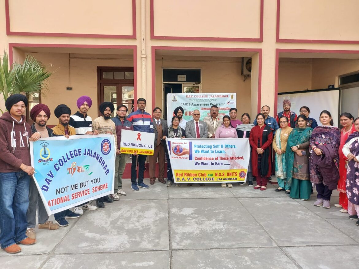 जालंधर: शहर के डी.ए.वी. कॉलेज ने 1 दिसंबर, 2025 को विश्व एड्स दिवस पर एड्स के बारे में जागरूकता फैलाने की दिशा में एक महत्वपूर्ण कदम उठाया। कॉलेज के डीबीटी-प्रायोजित विभाग, एनएसएस और रेड रिबन क्लब ने मिलकर एक जागरूकता कार्यक्रम आयोजित किया कार्यक्रम की शुरुआत प्राचार्य डॉ. राजेश कुमार, डीबीटी स्टार योजना समन्वयक डॉ. पुनीत पुरी और एनएसएस कार्यक्रम अधिकारी डॉ. साहिब सिंह द्वारा छात्रों को एड्स जागरूकता संदेश वाले लाल रिबन और पेन वितरित करने के साथ हुई। छात्रों को भारत सरकार द्वारा निर्मित एक विचारोत्तेजक नुक्कड़ नाटक भी दिखाया गया।