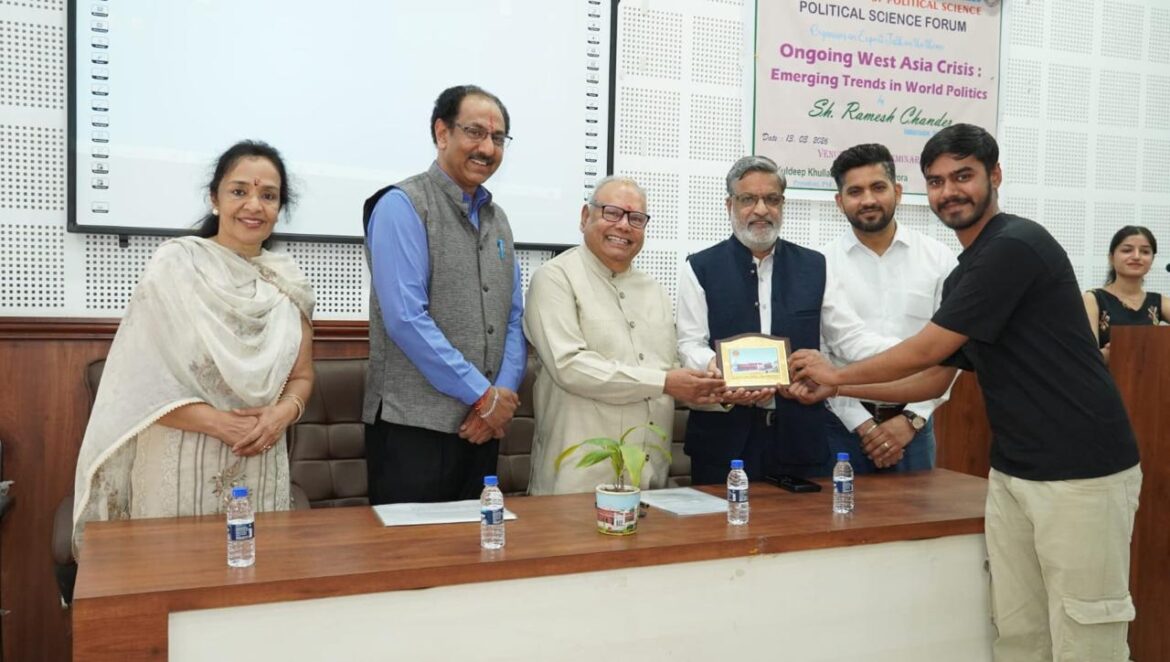 जालंधर: शहर के डी.ए.वी. कॉलेज में “पश्चिम एशिया में जारी संकट: विश्व राजनीति में उभरती प्रवृत्तियाँ” विषय पर एक विशेषज्ञ व्याख्यान का आयोजन किया गया। राजनीति विज्ञान मंच के तत्वावधान में स्नातकोत्तर राजनीति शास्त्र विभाग द्वारा इस महत्वपूर्ण विषय पर एक विशेषज्ञ व्याख्यान आयोजित किया गया। राजनयिक एवं विदेश मामलों में दीर्घ अनुभव रखने वाले सेवानिवृत्त राजदूत रमेश चंद्र इस कार्यक्रम के मुख्य वक्ता थे।
