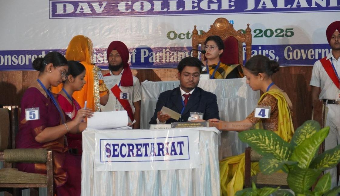 जालंधर: शहर के डी०ए०वी० कॉलेज ने राष्ट्रीय स्तर पर आयोजित 17वीं राष्ट्रीय युवा संसद प्रतियोगिता में प्रथम उपविजेता स्थान प्राप्त कर एक गौरवपूर्ण उपलब्धि अर्जित की है। यह प्रतियोगिता नई दिल्ली स्थित संसदीय कार्य मंत्रालय द्वारा आयोजित की गई, जिसका उद्देश्य देशभर के विश्वविद्यालयों एवं महाविद्यालयों में युवा संसद गतिविधियों को प्रोत्साहित करना है।