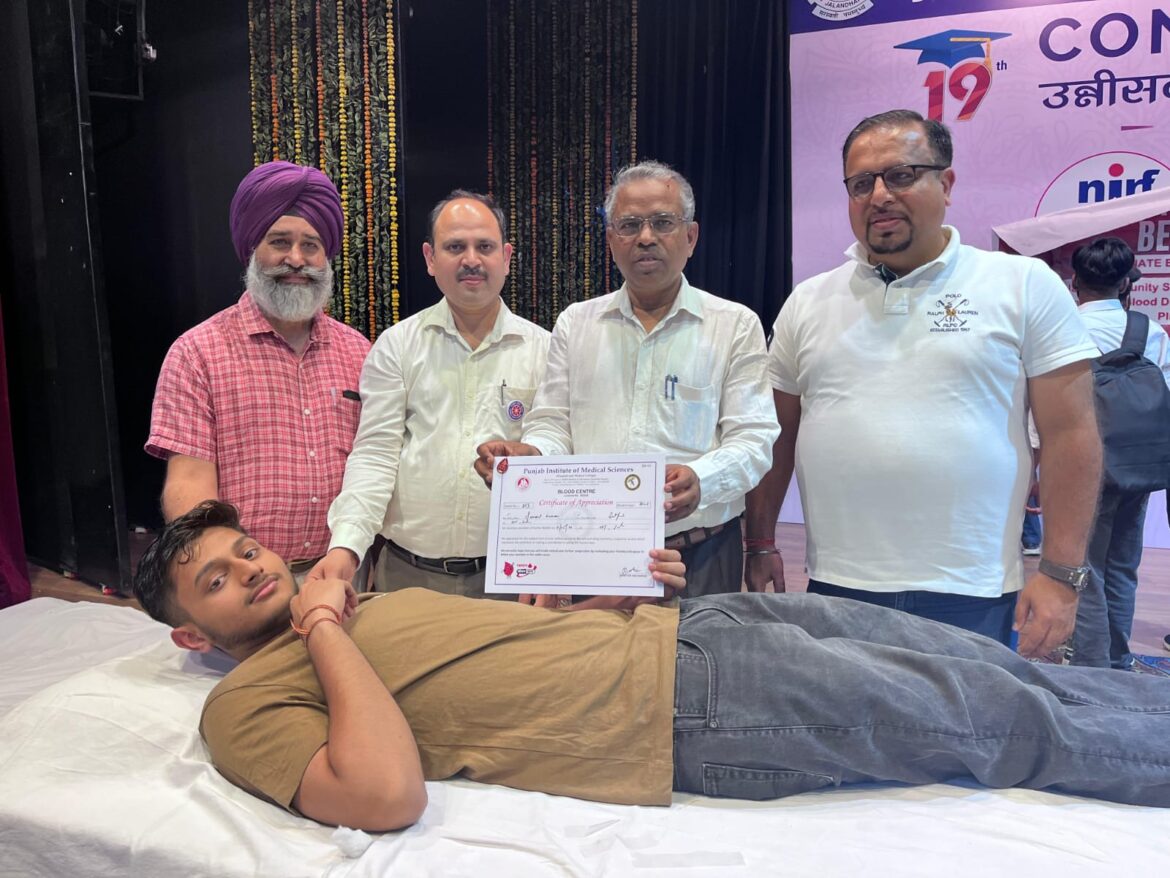 इस दौरान माननीय निदेशक, प्रो. बिनोद कुमार कनौजिया, कुलसचिव, प्रो. अजय बंसल, संकायाध्यक्ष, छात्र कल्याण, प्रो. अनीश सचदेवा, प्रो. रोहित मेहरा, एनएसएस समन्वयक डॉ किरण सिंह, चिकित्सा अधिकारी डॉ. तरुण सहगल और डॉ. सीताक्षी भाटिया, पीआईएमएस जालन्धर की डॉ. शीतल सहित अन्य संकाय सदस्यों की प्रतिष्ठित उपस्थिति ने इस अवसर को ओर अधिक गंभीरता प्रदान की। संकाय, छात्र और कर्मचारियों सहित 110 से अधिक व्यक्तियों ने उदारतापूर्वक अपना रक्तदान किया, जिससे संस्थान में सहानुभूति और सामुदायिक समर्थन की भावना रेखांकित हुई।