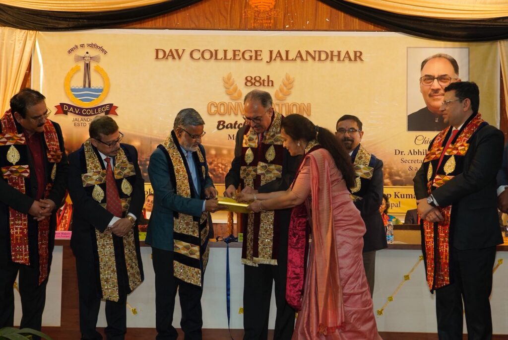 जालंधर: शहर के डीएवी कॉलेज ने 22 मार्च, 2026 को अपना 88वां दीक्षांत समारोह आयोजित किया। जहां भारत सरकार के मत्स्य विभाग के सचिव और कॉलेज के गौरवशाली पूर्व छात्र, आईएएस डॉ. अभिलक्ष लिखी ने मुख्य अतिथि के रूप में इस अवसर की शोभा बढ़ाई, जबकि प्रो. सुभाष चंदर विशिष्ट अतिथि के रूप में उपस्थित रहे। दीक्षांत समारोह में 2024–25 बैच के 400 से अधिक स्नातक और स्नातकोत्तर छात्रों को डिग्रियाँ प्रदान की गईं।
