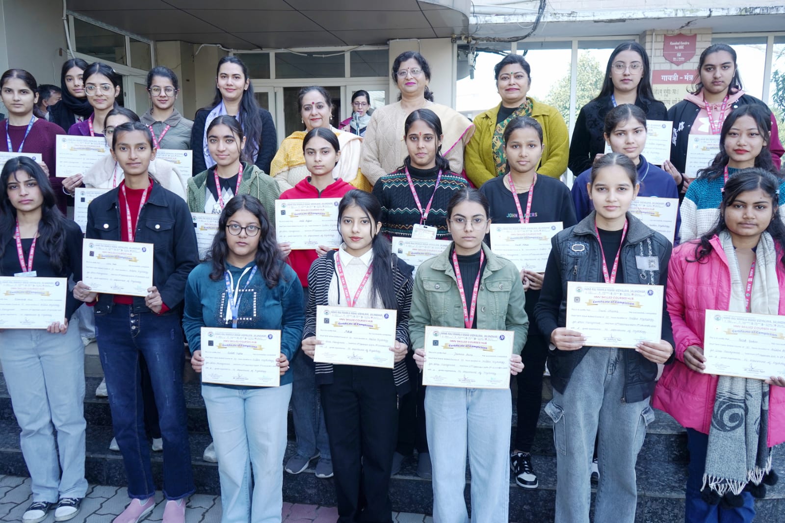 कार्यक्रम का आयोजन शॉर्ट टर्म कोर्स कोऑर्डिनेटर बीना गुप्ता तथा पीजी साइकोलॉजी विभाग की अध्यक्ष डॉ. आशामीन कौर के मार्गदर्शन में किया गया। सत्रों का संचालन मनोविज्ञान विभाग की सहायक प्रोफेसर प्रिया सेठ ने रिसोर्स पर्सन के रूप में किया। कोर्स में छात्राओं ने उत्साहपूर्वक भाग लिया और सकारात्मक प्रतिक्रिया दी। यह पहल छात्राओं के जीवन में अधिक सकारात्मक और आशावादी दृष्टिकोण विकसित करने की दिशा में एक महत्वपूर्ण कदम साबित हुई।