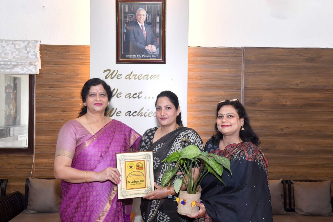 सत्र के दौरान अरोमा थेरेपी पर जतिंदर ने एसेंशियल ऑयल्स (आवश्यक तेलों) की अवधारणा, लाभ और चिकित्सीय उपयोगों के बारे में विस्तार से बताया। उन्होंने अरोमा थेरेपी उपचार करते समय आवश्यक विभिन्न मिश्रण तकनीकों, लगाने के तरीकों और सुरक्षा सावधानियों का प्रदर्शन किया। डीप टिश्यू मसाज सत्र में, छात्राओं को उन्नत मसाज तकनीकों में प्रशिक्षित किया गया, जिसका मुख्य उद्देश्य मांसपेशियों के तनाव को कम करना, रक्त संचार में सुधार करना और आराम को बढ़ावा देना था। विशेषज्ञ ने छात्राओं को चरण-दर-चरण प्रक्रियाओं के माध्यम से मार्गदर्शन दिया, जिसमें दबाव डालना, शरीर की यांत्रिकी (बॉडी मैकेनिक्स) और ग्राहक को संभालने के तरीके शामिल थे। स्वच्छता, पेशेवर नैतिकता और ग्राहक परामर्श पर भी विशेष जोर दिया गया।