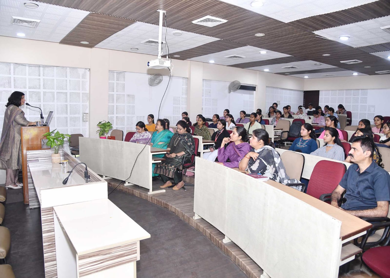 उन्होंने इस बात पर जोर दिया कि महिलाओं के स्वास्थ्य के प्रति जागरूकता आज की सबसे बड़ी ज़रूरत है। उन्होंने बताया कि इस तरह की पहल न केवल छात्राओं को शारीरिक स्वास्थ्य के प्रति संवेदनशील बनाती है, बल्कि उन्हें जिम्मेदार और जागरूक नागरिक बनने के लिए सशक्त भो करती है। डॉ. सीमा पसरीचा ने महिलाओं के स्वास्थ्य, स्वच्छता और एच.आई.वी. के संबंध में बहुमूल्य जानकारी साझा की। उन्होंने छात्राओं को स्वस्थ जीवनशैली अपनाने, उचित स्वच्छता बनाए रखने और नियमित स्वास्थ्य जाँच करवाने के लिए प्रोत्साहित किया।