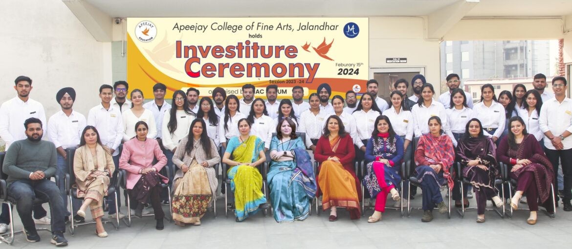 जालंधर: शहर के एपीजे कॉलेज ऑफ़ फाइन आर्ट्स के पीजी डिपार्टमेंट ऑफ़ कॉमर्स के MAC FORUM द्वारा विद्यार्थियों के लिए इन्वेस्टचर सेरेमनी का आयोजन किया गया।जिसमें नेतृत्व की क्षमता रखने वाले विद्यार्थियों को उनकी योग्यता के अनुसार बैजेज प्रदान किए गए। MAC FORUM की प्रेज़िडेंट एंजेल शर्मा एवं वाइस प्रेजिडेंट रजत ने प्राचार्य डॉ नीरजा ढींगरा का अभिनंदन करते हुए कहा कि हमारे टीचर्स ने हम पर विश्वास करते हुए जिस जिम्मेदारी को सौंपा है। हम पूरी ईमानदारी से उसको निभाते हुए विभाग की गतिविधियों में बढ़-चढ़ के न केवल स्वयं भाग लेंगे बल्कि और विद्यार्थियों को भी इसके लिए प्रोत्साहित एवं प्रेरित करेंगे।