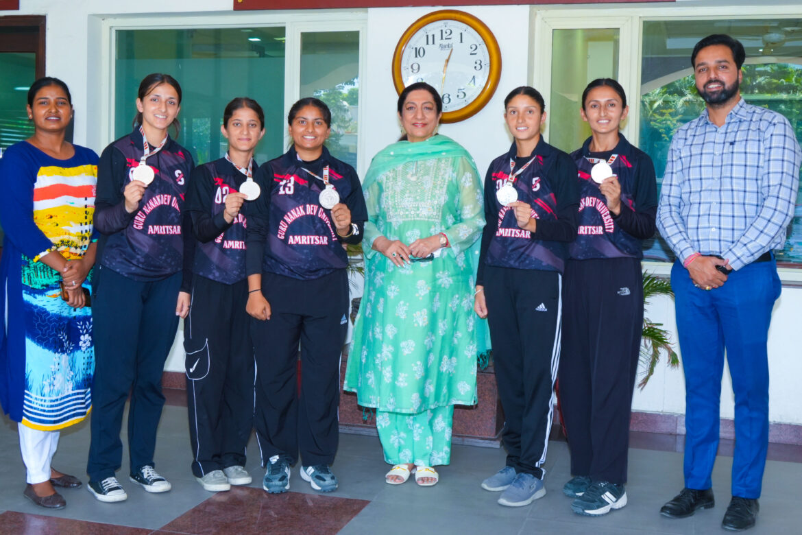 जालंधर: शहर के कन्या महा विद्यालय की सॉफ्टबॉल टीम ने ऑल इंडिया इंटर यूनिवर्सिटी सॉफ्टबॉल चैंपियनशिप से सिल्वर मेडल हासिल कर विद्यालय को गौरवान्वित किया। इस चैंपियनशिप में कन्या महाविद्यालय की सॉफ्टबॉल टीम की खिलाड़ी छात्राओं कविता, निकिता, खुशदीप कौर, नेहा, रवीना एवं हर्षिता ने अपने शानदार प्रदर्शन के साथ खेल के प्रति अपनी लगन एवं समर्पण को बाखूबी प्रदर्शित किया। विद्यालय प्रिंसिपल प्रो. अतिमा शर्मा द्विवेदी ने सभी विजेता छात्राओं को मुबारकबाद देते हुए भविष्य में भी सफलता के नए आयाम स्थापित करने के लिए प्रेरित किया।