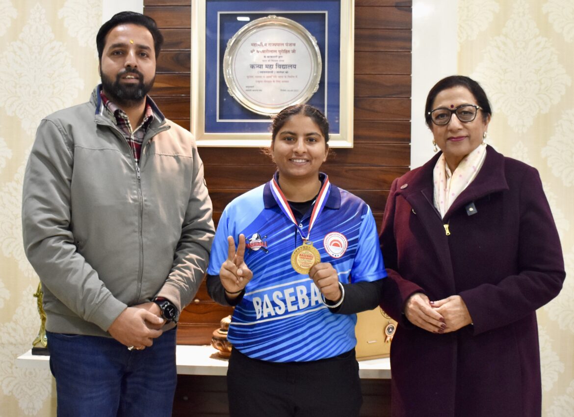 जालंधर : कन्या महा विद्यालय (स्वायत्त) ने शिक्षा के साथ-साथ खेलों में भी उत्कृष्ट प्रदर्शन के माध्यम से संस्थान का नाम रोशन करना जारी रखा है। इसी कड़ी में, के.एम.वी. की बेसबॉल खिलाड़ी खुशदीप कौर ने 37वीं सीनियर नेशनल बेसबॉल चैंपियनशिप में स्वर्ण पदक हासिल