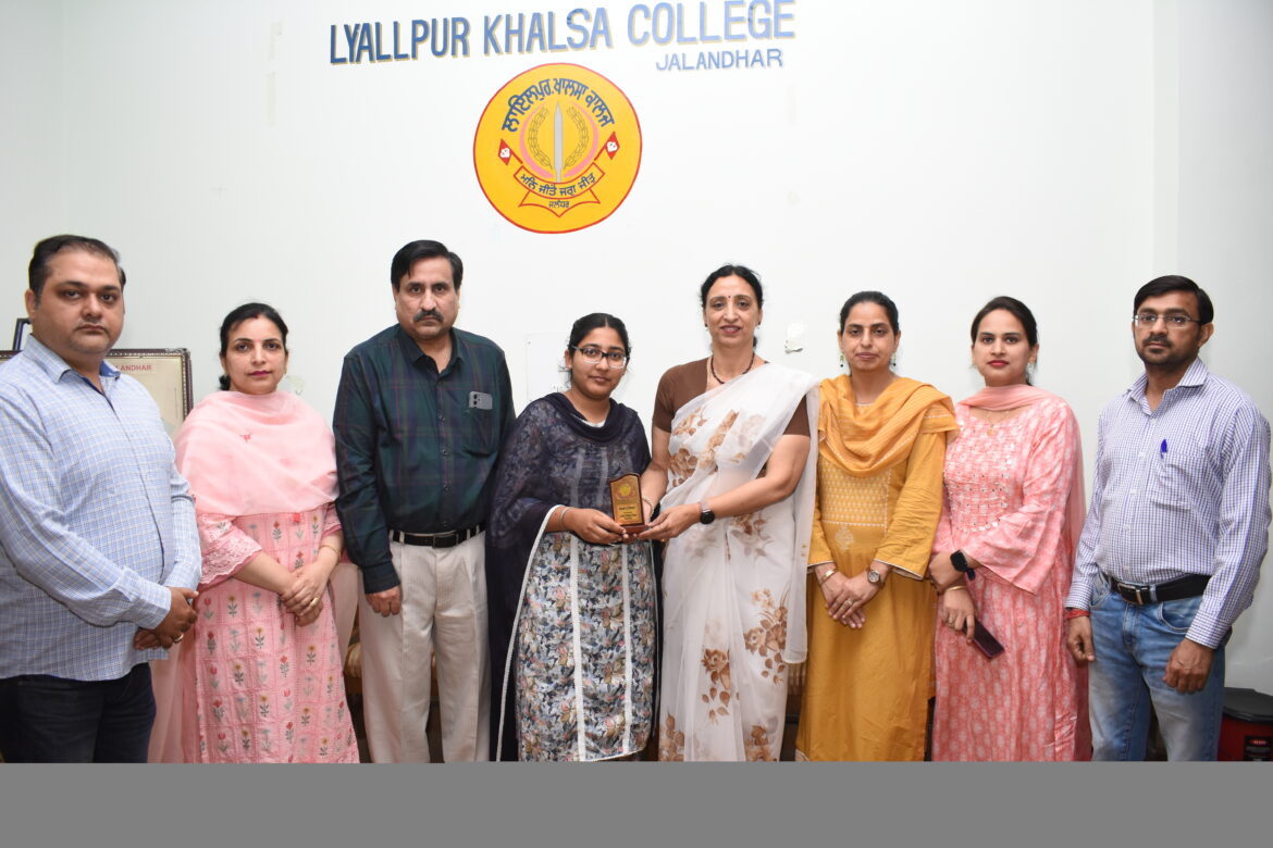 वहीं प्रिंसिपल डॉ. सुमन चोपड़ा ने छात्रा को भविष्य में और अधिक मेहनत और लगन से पढ़ाई करने के लिए प्रेरित किया और उसके अच्छे भविष्य की कामना की। इस मौके पर केमिस्ट्री विभागाध्यक्ष डॉ. रजनीश मोदगिल , डॉ. नवजोत कौर, डॉ. गीतांजलि कौशल, डॉ. विकास कुमार, डॉ. हर्षवीर अरोड़ा और डॉ. हरजिंदर कौर भी मौजूद थे।
