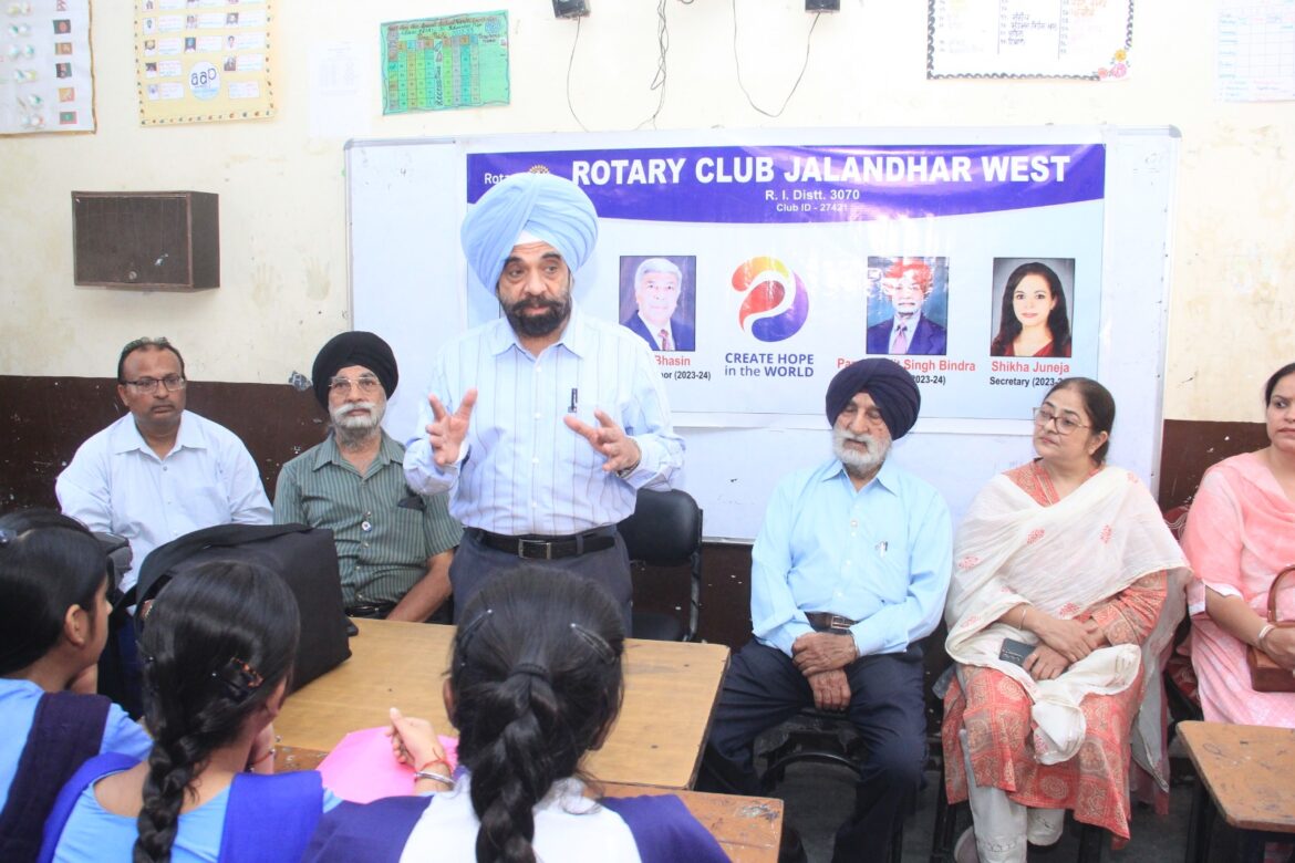 जालंधर: जालंधर वेस्ट के रोटरी क्लब के सदस्यों ने सरकार के स्कूली बच्चों के लाभ के लिए 09 मई 2024 को गांधी कैंप में कन्या माध्यमिक विद्यालय में दो वार्ताएं आयोजित कीं। इस बैठक की शुरुआत में डॉ. एस.पी.एस. ग्रोवर पीडीजी और निदेशक न्यू रूबी हॉस्पिटल प्राइवेट लिमिटेड जालंधर ने बच्चों को 7 चरणों में उचित हाथ धोने के द्वारा दैनिक खाने की आदतों के पूर्ण स्वच्छ, स्वच्छ तरीके को बनाए रखने के बारे में जानकारी दी, जो अन्यथा विभिन्न बीमारियों का कारण बनते हैं। पेट के संक्रामक रोग, बच्चों को घर और स्कूल परिसर में स्वस्थ और खुशहाल जीवन जीने के लिए स्वस्थ और स्वच्छ भोजन की आदत विकसित करनी चाहिए।