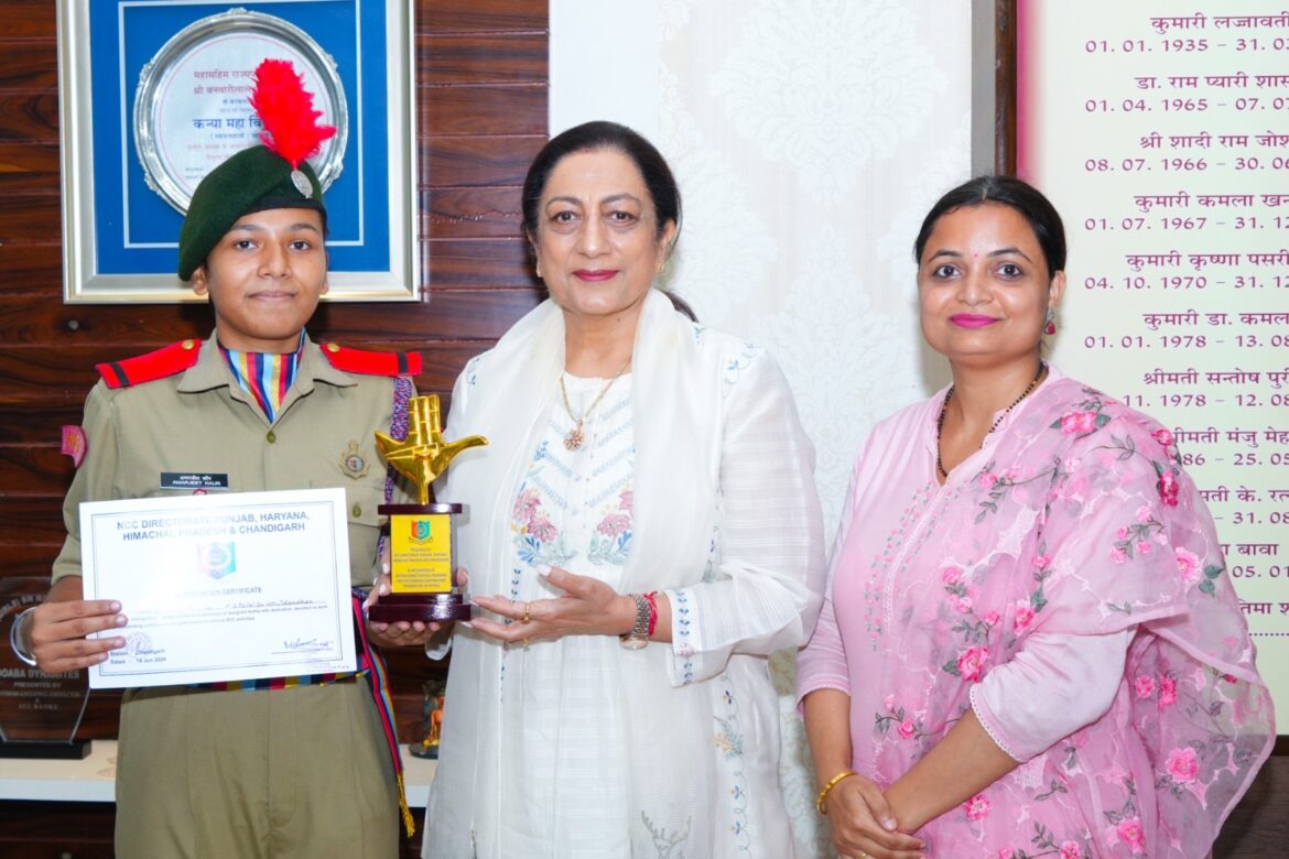 जालंधर: शहर के कन्या महा विद्यालय (स्वायत्त) की एनसीसी कैडेट अमरजीत कौर को एक मोटिवेशनल सेमिनार के दौरान सराहना पुरस्कार से सम्मानित किया गया। वह जालंधर समूह की एकमात्र कैडेट थीं, जो इस सैमीनार का हिस्सा बनीं। इस सैमीनार का आयोजन एनसीसी निदेशालय पंजाब, हरियाणा, हिमाचल प्रदेश और चंडीगढ़ द्वारा किया गया था। प्राचार्य प्रोफेसर डॉ. अतीमा शर्मा द्विवेदी ने कहा कि यह मान्यता हमारे छात्रों की असाधारण प्रतिभा और समर्पण को रेखांकित करती है और भविष्य के नेताओं को पोषित करने की के.एम.वी. की प्रतिबद्धता को दर्शाती है।
