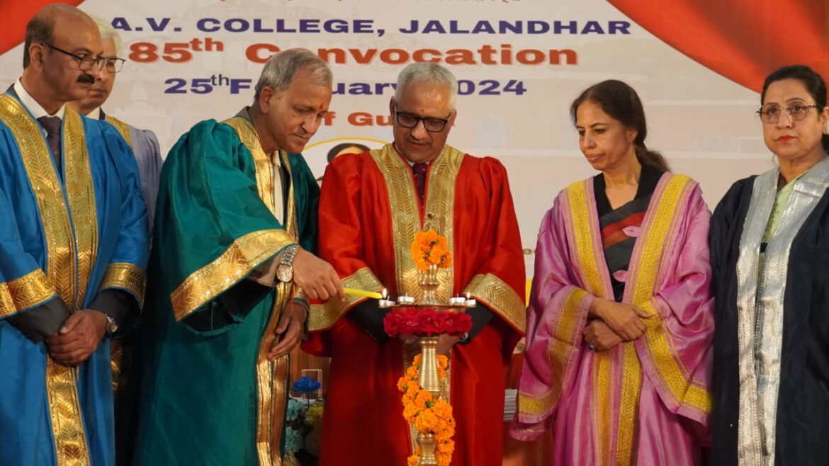 जालंधर: शहर के डीएवी कॉलेज में 25 फरवरी को 85वें दीक्षांत समारोह का आयोजन किया गया। इस समारोह में डॉ. जतिंदर कौर अरोड़ा, कार्यकारी निदेशक, पंजाब स्टेट काउंसिल फॉर साइंस एंड टेक्नोलॉजी चंडीगढ़ मुख्य अतिथि के रूप में उपस्थित रहीं। विशिष्ट अतिथि के रूप में समाजसेवी श्री सुधीर शर्मा ने शिरकत की। अकादमिक प्रोसेशन के बाद समारोह का शुभारंभ डीएवी गान, दीप प्रज्वलन व वेद मंत्रोच्चारण से हुआ। प्राचार्य डॉ. राजेश कुमार, वरिष्ठ उप प्राचार्य प्रो. अर्चना ओबराय, उप प्राचार्य प्रो. दीपक कुंवर, रजिस्ट्रार डॉ. एस. के. तुली, स्टाफ सचिव डॉ. संजीव धवन और एलएमसी सदस्य प्रो. कुंवर राजीव और डॉ. नवीन सूद ने मुख्य अतिथि, विशिष्ट अतिथि तथा कॉलेज के पूर्व छात्र कर्नल मनमोहन सिंह को पुष्पगुच्छ, शाल व स्मृति चिह्न प्रदान करके सम्मानित किया।