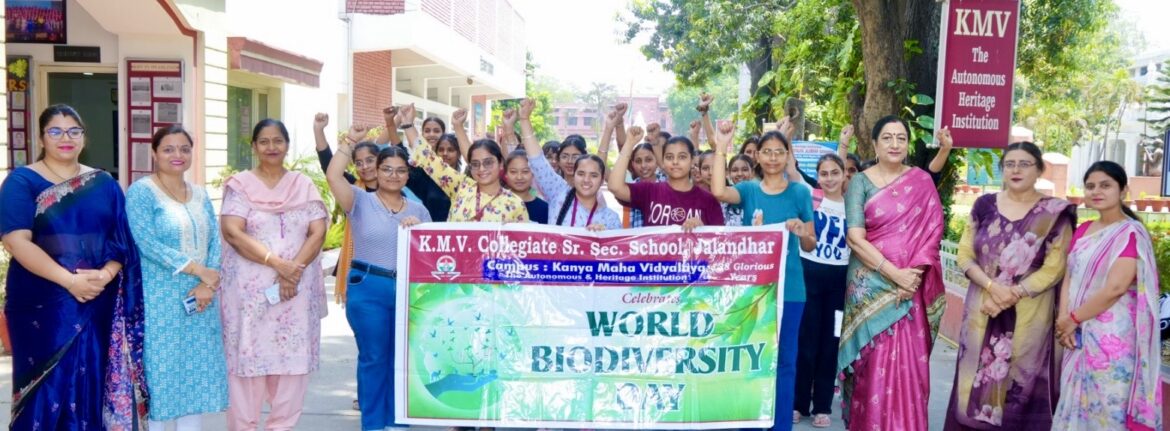 जालंधर: शहर के के.एम.वी. कॉलेजिएट सीनियर सेकेंडरी स्कूल के बायोलॉजी विभाग द्वारा अंतर्राष्ट्रीय बायोडायवर्सिटी दिवस मनाया गया। इस अवसर जैव विविधता के संरक्षण और पौधों के व्यापक संग्रह को बनाए रखने एवं पर्यावरण की रक्षा के लिए छात्राओं में जागरूकता फैलाने के मकसद के साथ दो दिवसीय गतिविधियों का आयोजन करवाया गया जिसमें छात्राओं ने पूरे जोश और उत्साह के साथ भाग लिया। पहले दिन के दौरान छात्राओं ने एक रैली निकाली और विभिन्न एवं रचनात्मक विचारों अथवा संदेशों के साथ समृद्ध जैव विविधता को बचाने के लिए जागरूकता पैदा की।