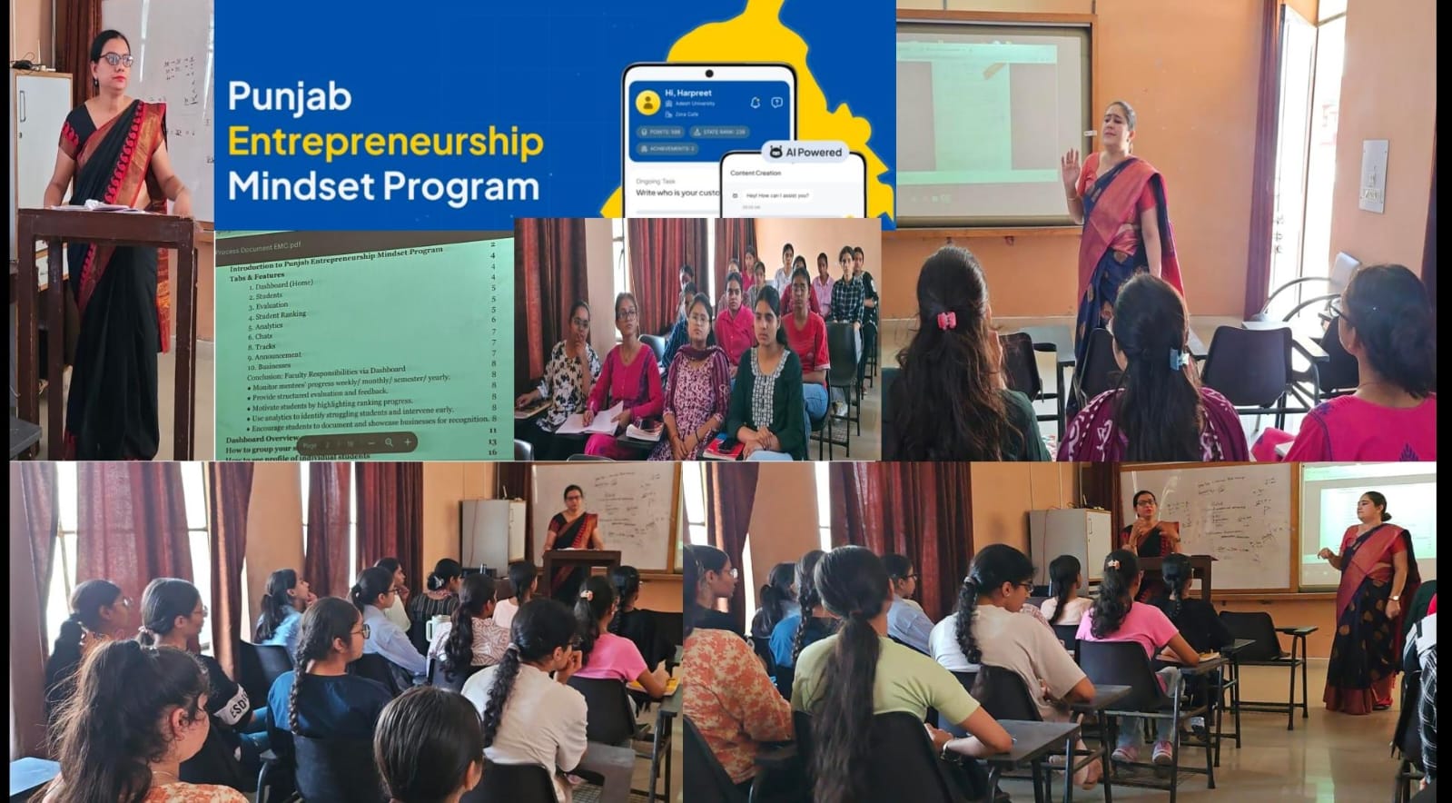 पंजाब स्टार्टअप एंटरप्रेन्योरशिप माइंडसेट करिकुलम पंजाब के सभी विश्वविद्यालयों के लिए 2025-26 एकेडमिक वर्ष से एक अनिवार्य प्रोग्राम है। यह प्रोग्राम एआई-इनेबल्ड मॉड्यूल का उपयोग करके छात्रों को अपना खुद का व्यवसाय शुरू करने और बनाने में मार्गदर्शन करता है, जिसमें वास्तविक दुनिया के अनुभव और लचीली गति पर ध्यान केंद्रित किया जाता है। पंजाब स्टार्टअप ऐप के माध्यम से, छात्र विभिन्न बिजनेस ट्रैक में से चुन सकते हैं, जिसमें ई-कॉमर्स, कंटेंट क्रिएशन, प्रोफेशनल सेवाएं और रिटेल शामिल हैं।