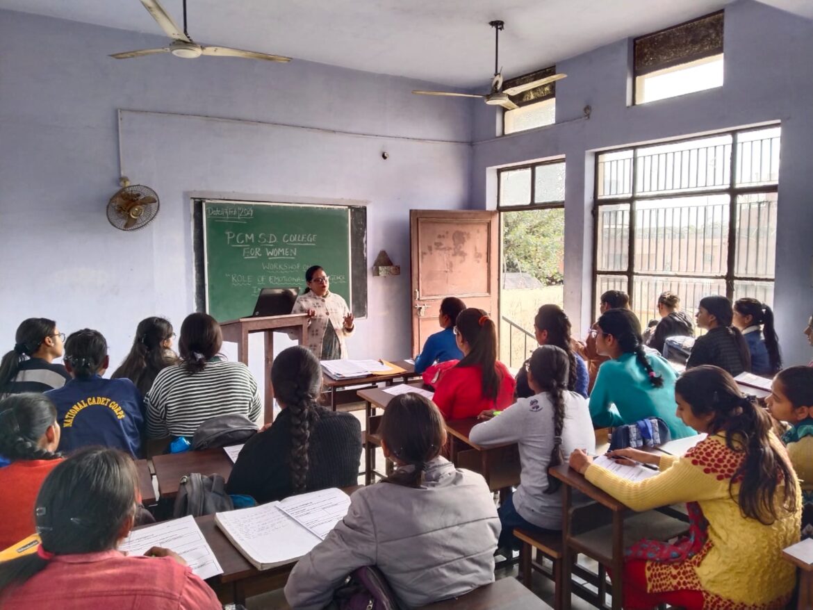 पी.सी.एम.एस.डी. कॉलेज फॉर वूमेन, जालंधर में बी.ए. बी.एड. डिपार्टमेंट द्वारा “रोल ऑफ इमोशनल इंटेलिजेंस इन डेली लाइफ” विषय पर वर्कशॉप का आयोजन किया गया। इस वर्कशॉप का उद्देश्य छात्राओं को इमोशनल इंटेलिजेंस की हमारे जीवन में क्या भूमिका है का ज्ञान देना था। वर्कशॉप ने छात्राओं की भावनात्मक अंतर्दृष्टि, दूसरों के साथ जुड़ने पर उनकी भावनात्मक बुद्धिमत्ता के प्रभाव की पहचान करने और सहानुभूति बनाए रखने का अभ्यास करने में मदद की।