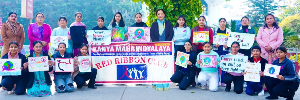 जालंधर: शहर के कन्या महा विद्यालय के स्टूडेंट वेलफेयर विभाग के अंतर्गत कार्यरत रेड रिबन क्लब के द्वारा विश्व कैंसर दिवस मनाया गया। इस संबंध में राष्ट्रीय स्तरीय पोस्टर मेकिंग, स्लोगन राइटिंग, अवेयरनेस लेक्चरर्स तथा पावर पॉइंट प्रेजेंटेशन जैसी हफ्ता भर चलने वाली गतिविधियों का आयोजन करवाया गया। विद्यालय के विभिन्न विभागों से छात्राओं ने इन गतिविधियों में बढ़-चढ़ कर हिस्सा लेते हुए कैंसर जैसी भयंकर बीमारी के लक्षणों, कारणों, किस्मों एवं समय रहते इस से बचाव को प्रदर्शित करते हुए जागरूकता फैलाई।